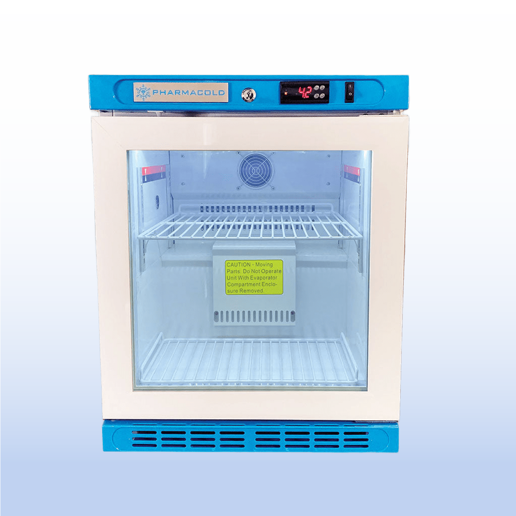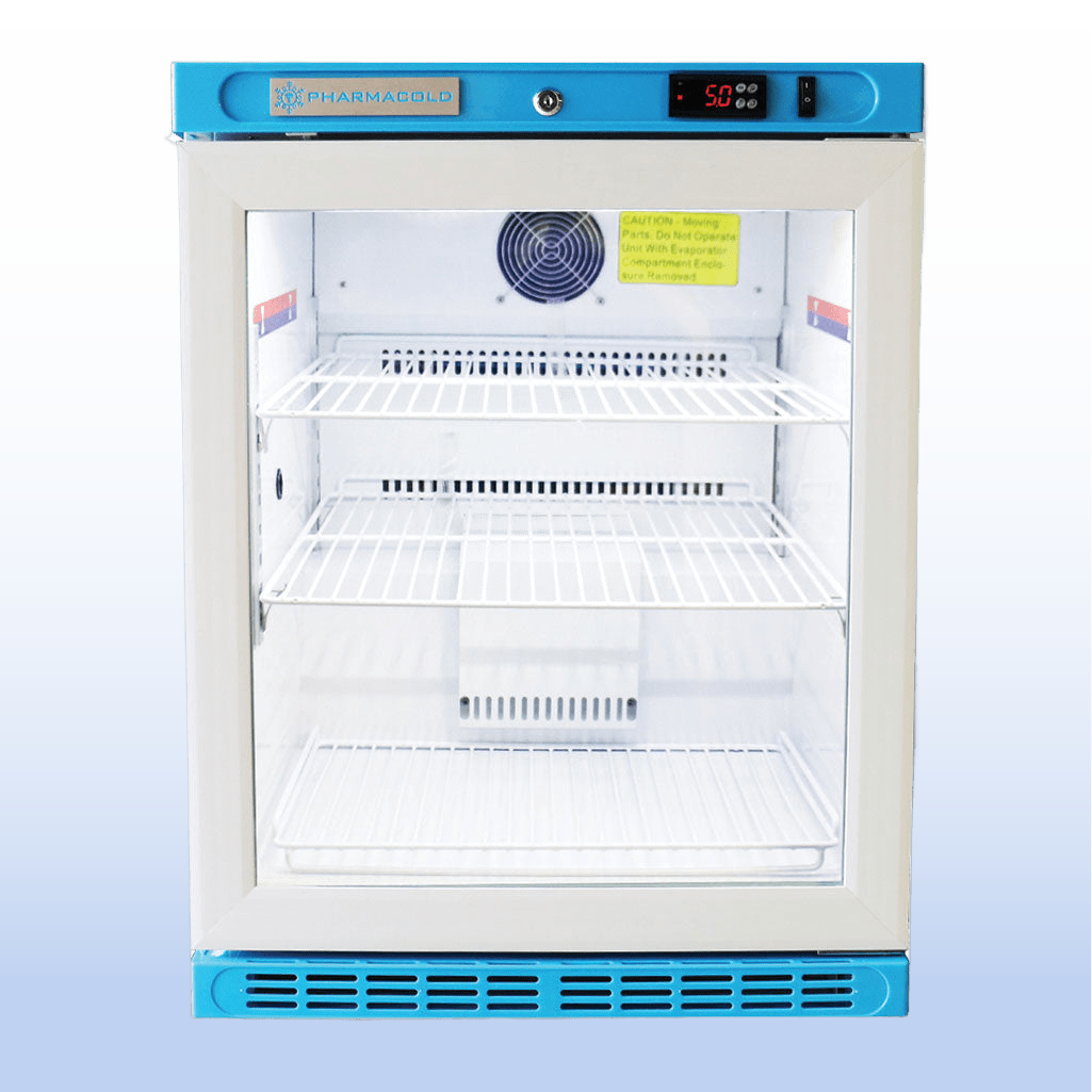 The Pharmacold NAB-140 is a versatile fridge with a reversible door and front air vents for tight spaces. It includes adjustable shelves, forced air cooling, remote alarms, and a backup battery.